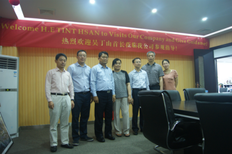 2017年4月18日上午,緬甸體育部部長吳丁山在緬中交流合作協(xié)會會長、緬甸武術(shù)協(xié)會主席李伯波陪同下一行9人蒞臨我公司參觀指導(dǎo),我公司董事長劉高旺、總經(jīng)理吳德忠、副總經(jīng)理黃水木的熱情陪同吳丁山部長、李伯波會長一行參觀了公司總部大樓及各權(quán)屬公司、主要生產(chǎn)部門等。