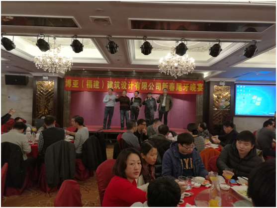 晚上18時,表彰大會結(jié)束后,2015年博亞筑業(yè)新春尾牙晚宴在泉州康特華府泉州三廳拉開帷幕。晚宴現(xiàn)場充滿了喜慶的氣氛,洋溢著博亞人火熱的激情,博亞筑業(yè)名譽(yù)董事長王鳳官先生、董事長劉高旺先生、總經(jīng)理吳德忠先生、總工程師盧崇杰先生、黃水木先生共同舉杯感謝各位同事2015年度的辛勤工作,并預(yù)祝博亞筑業(yè)2016年再譜新篇章!