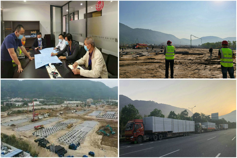 公司迅速組織了一支由有豐富醫(yī)療項(xiàng)目設(shè)計(jì)經(jīng)驗(yàn)的各專業(yè)技術(shù)骨干組成的設(shè)計(jì)團(tuán)隊(duì),15日當(dāng)晚22時(shí)許抵達(dá)項(xiàng)目現(xiàn)場(chǎng)進(jìn)行實(shí)地踏勘。時(shí)間緊、任務(wù)重,設(shè)計(jì)團(tuán)隊(duì)連夜奮戰(zhàn),于3月16日清晨完成項(xiàng)目第一輪設(shè)計(jì)方案,并馬不停蹄地前往項(xiàng)目現(xiàn)場(chǎng),向奮戰(zhàn)在抗疫前線的各級(jí)領(lǐng)導(dǎo)和參建單位匯報(bào)。當(dāng)天下午,稍作調(diào)整后的設(shè)計(jì)方案獲得參會(huì)領(lǐng)導(dǎo)和專家的高度認(rèn)可,順利通過多單位技術(shù)聯(lián)審;3月17日上午項(xiàng)目初步設(shè)計(jì)圖紙出具,下午項(xiàng)目設(shè)計(jì)團(tuán)隊(duì)進(jìn)行設(shè)計(jì)技術(shù)交底,并安排各專業(yè)技術(shù)人員開始24小時(shí)駐現(xiàn)場(chǎng)進(jìn)行施工指導(dǎo)配合等工作;3月18日上午10時(shí)許就提交了泉州市快捷健康驛站(北峰)項(xiàng)目(總建筑面積5.3萬平方米)各專業(yè)施工圖。頭尾日夜奮戰(zhàn)不到70小時(shí),公司就快速提交了泉州市快捷健康驛站(北峰)抗疫項(xiàng)目的所有設(shè)計(jì)圖紙