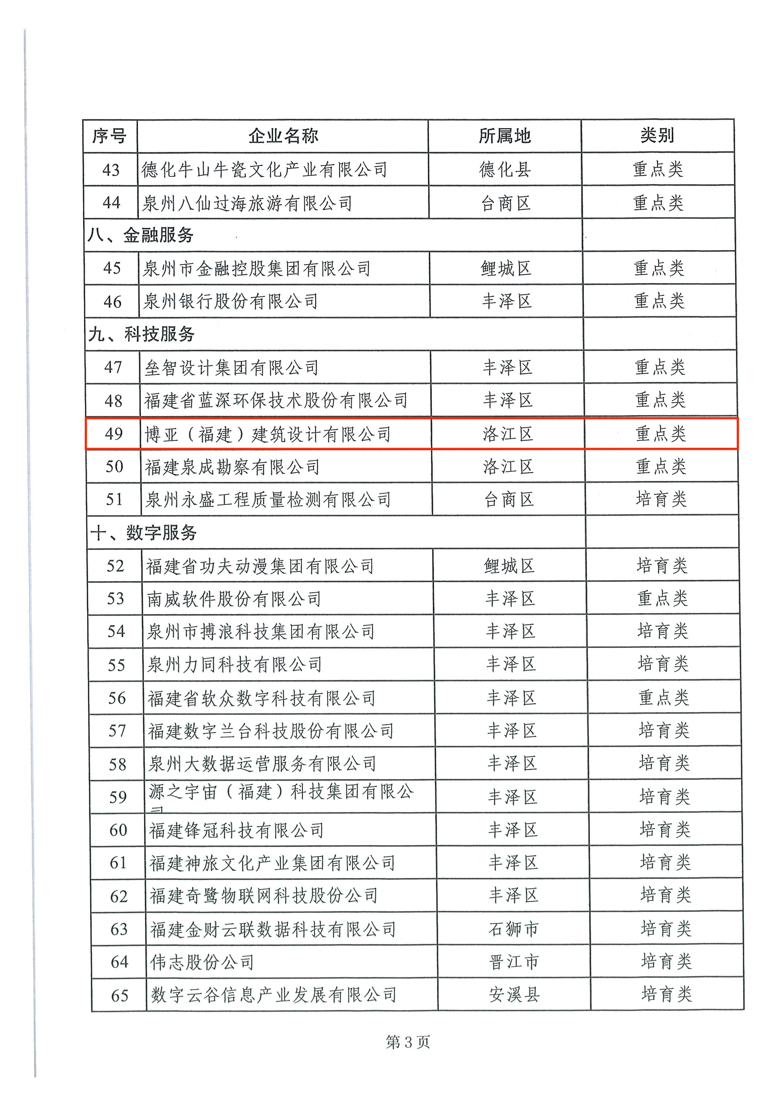 2023年7月12日,經(jīng)洛江區(qū)政府初審?fù)扑]、行業(yè)主管部門評(píng)審和泉州市現(xiàn)代服務(wù)產(chǎn)業(yè)發(fā)展小組研究,公布了2023年度泉州市現(xiàn)代服務(wù)業(yè)重點(diǎn)企業(yè)名單,博亞(福建)建筑設(shè)計(jì)有限公司獲泉州市“現(xiàn)代服務(wù)業(yè)重點(diǎn)企業(yè)”認(rèn)定。這是公司繼2021年獲“泉州市第三產(chǎn)業(yè)龍頭企業(yè)”、2022年獲“泉州市建筑業(yè)準(zhǔn)龍頭企業(yè)”稱號(hào)后,再一次獲得市政府和行業(yè)主管部門的肯定。