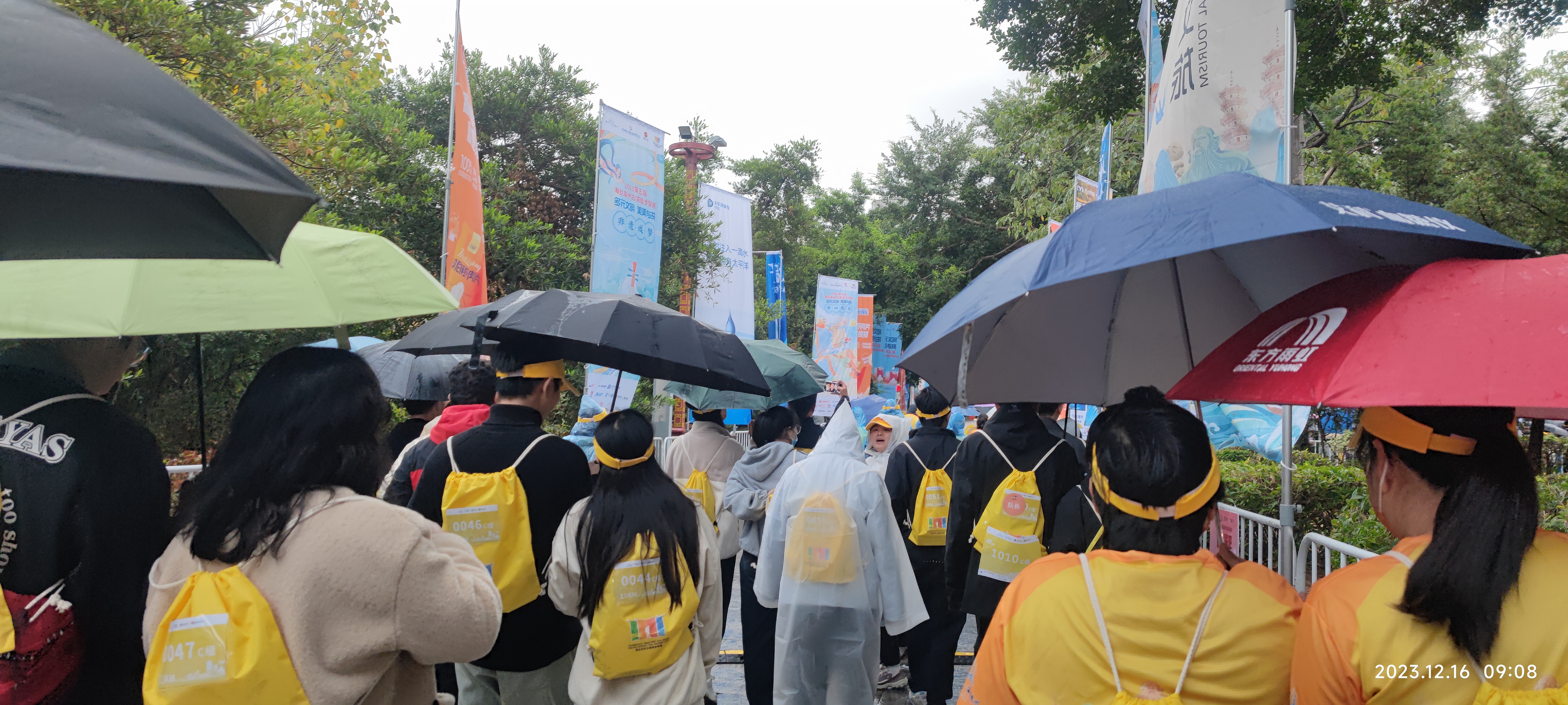 出發(fā)儀式上,似乎是為了考驗(yàn)大家,天空下起了小雨,但絲毫沒有澆滅大家的熱情。