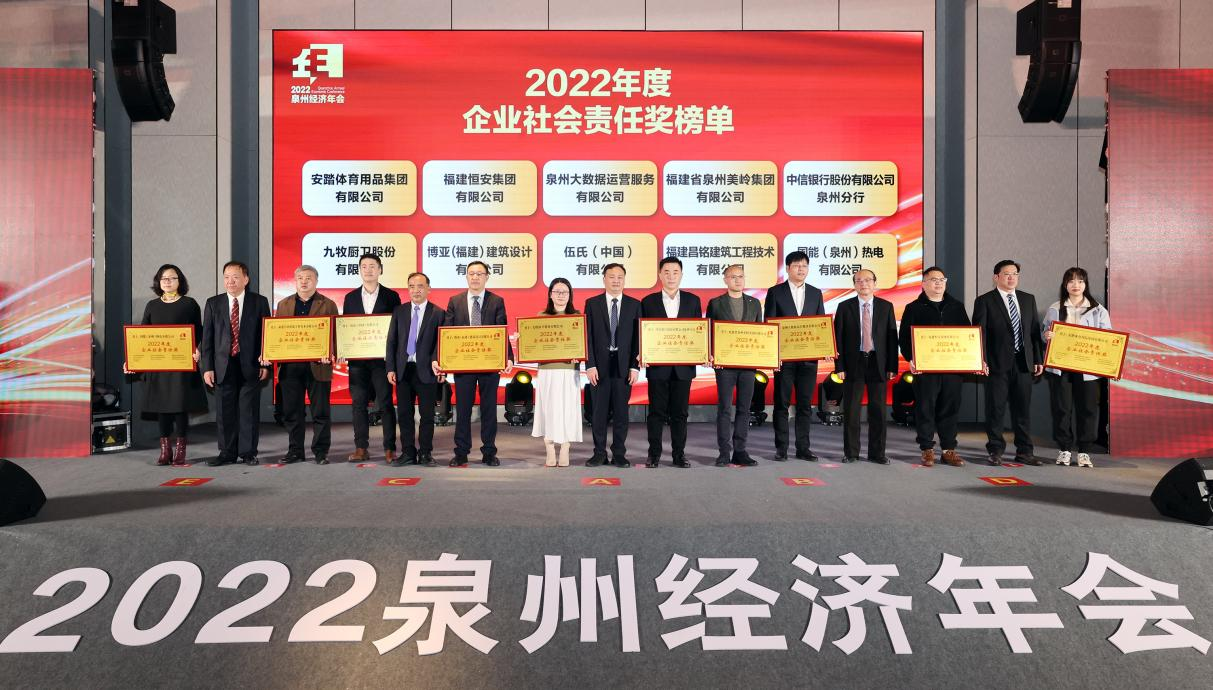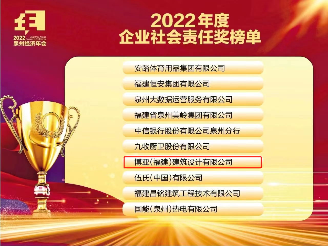 “花開(kāi)刺桐,春色錦繡”。2月16日下午,由泉州市委宣傳部、市發(fā)改委、市工信局、市農(nóng)業(yè)農(nóng)村局、市金融監(jiān)管局、市數(shù)字辦、市總工會(huì)、市工商聯(lián)、市企聯(lián)及泉州晚報(bào)社聯(lián)合舉辦的泉州經(jīng)濟(jì)年會(huì)盛大召開(kāi)。博亞(福建)建筑設(shè)計(jì)有限公榮獲泉州“2022年度企業(yè)社會(huì)責(zé)任獎(jiǎng)”。