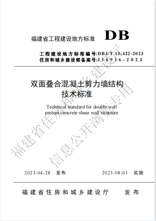 近日,由博亞公司作為第一參編單位編制的《雙面疊合混凝土剪力墻結(jié)構(gòu)技術(shù)標(biāo)準(zhǔn)》(DBJ/T13-422-2023 )經(jīng)福建省住房和城鄉(xiāng)建設(shè)廳批準(zhǔn)正式發(fā)布,并將于2023年8月1日起正式實(shí)施。