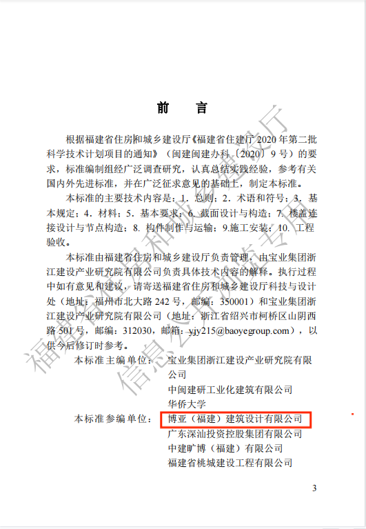 本標(biāo)準(zhǔn)是為了規(guī)范雙面疊合混凝土剪力墻結(jié)構(gòu)的設(shè)計(jì)、生產(chǎn)制作、施工及驗(yàn)收,做到安全適用、技術(shù)先進(jìn)、經(jīng)濟(jì)合理、確保質(zhì)量,推動(dòng)雙面疊合混凝土剪力墻結(jié)構(gòu)在建筑工程中的應(yīng)用。這也是博亞公司繼2019年作為主編單位出版《泉州市農(nóng)村住宅設(shè)計(jì)通用圖集》后,作為參編單位編制的省級(jí)地方標(biāo)準(zhǔn)。